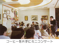 開放的で明るい喫茶スペースは、地域交流の場として、ミニコンサート、ミニギャラリーの展示、人形劇の公演などを行っていて、大変好評をいただいています。
